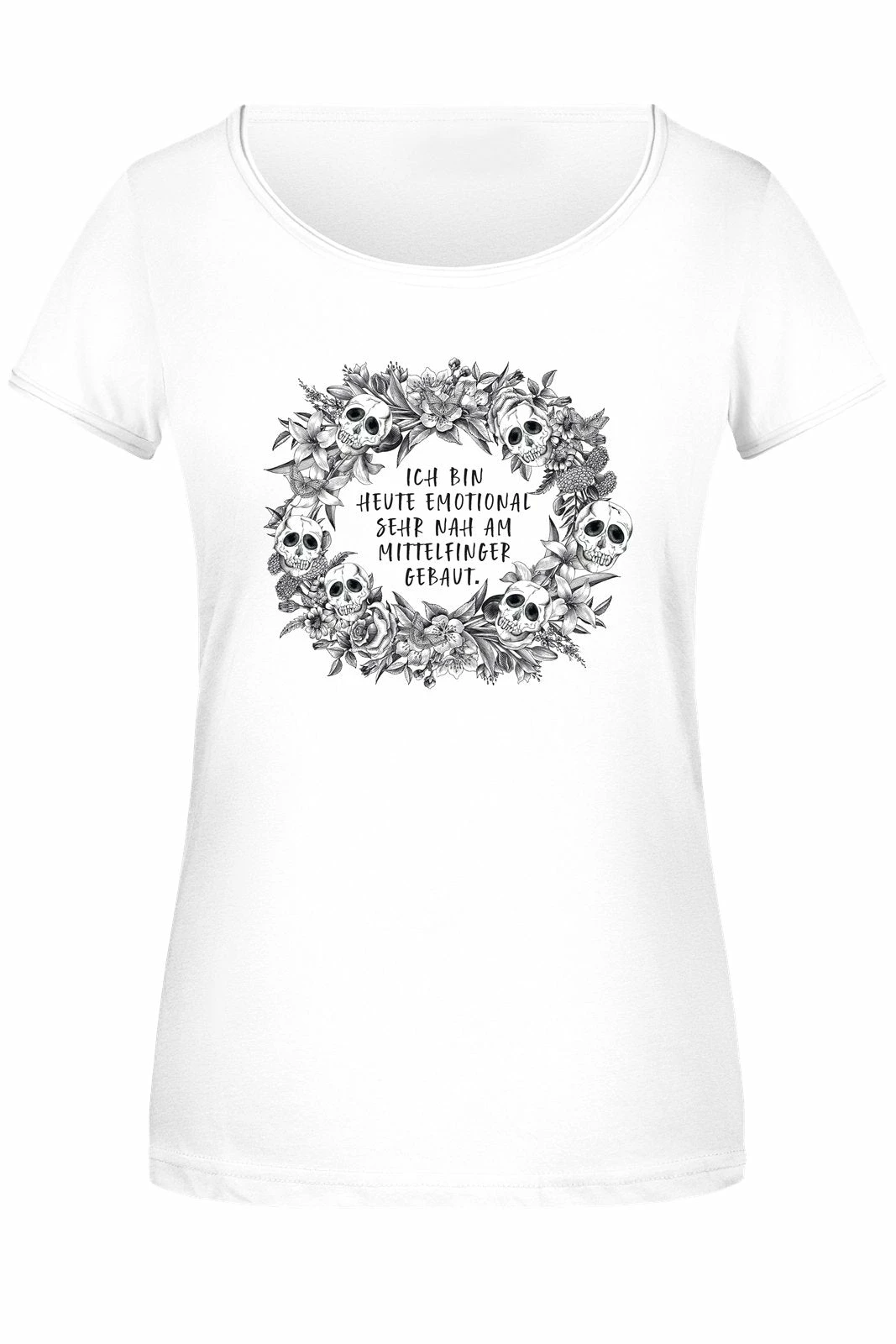 Skull Statement 💀 T-Shirt mit Spruch: Ich bin heute emotional sehr nah am Mittelfinger gebaut. 💀