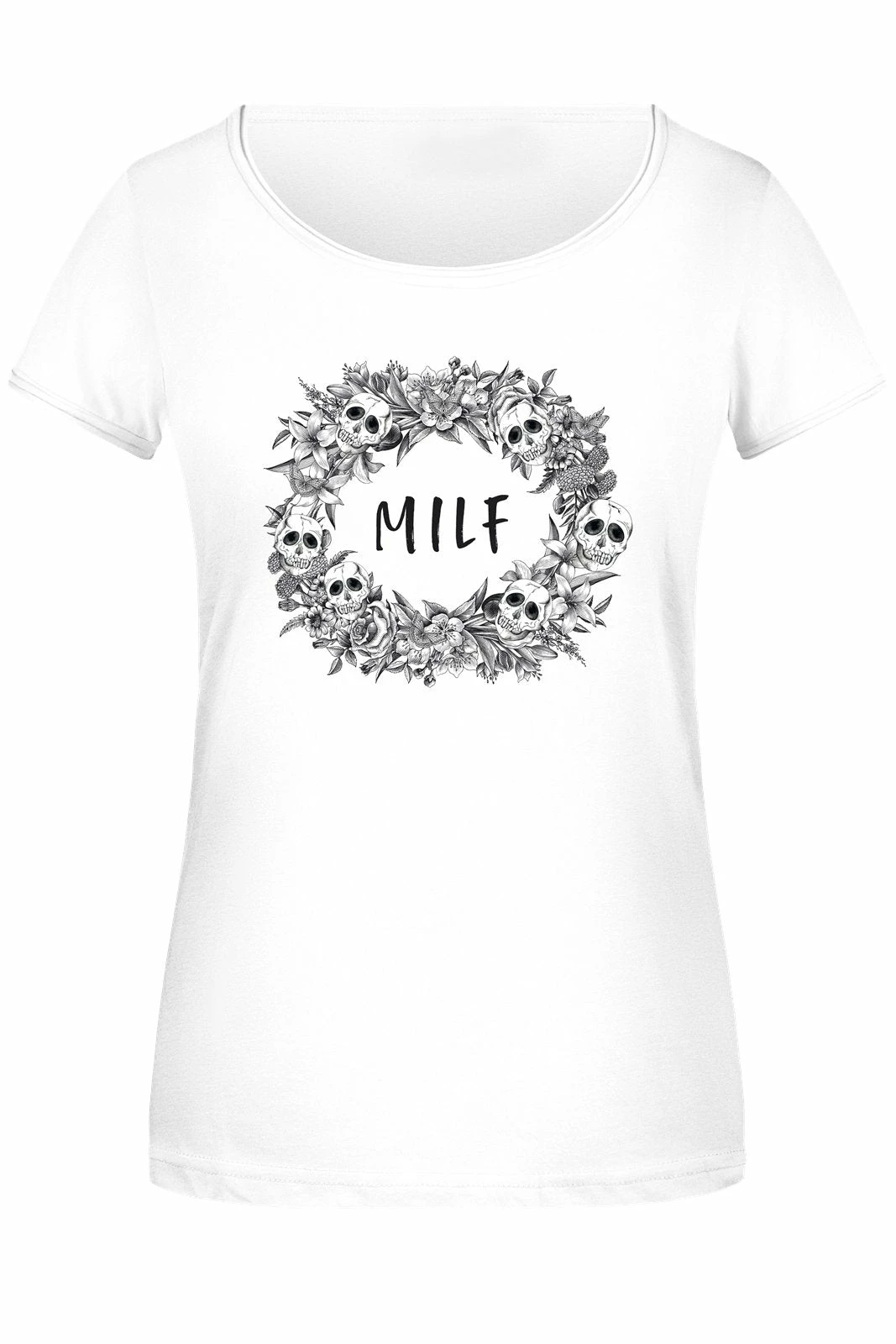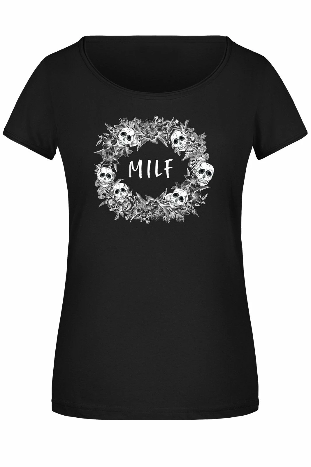 Skull Statement 💀 T-Shirt mit Spruch: Milf 💀