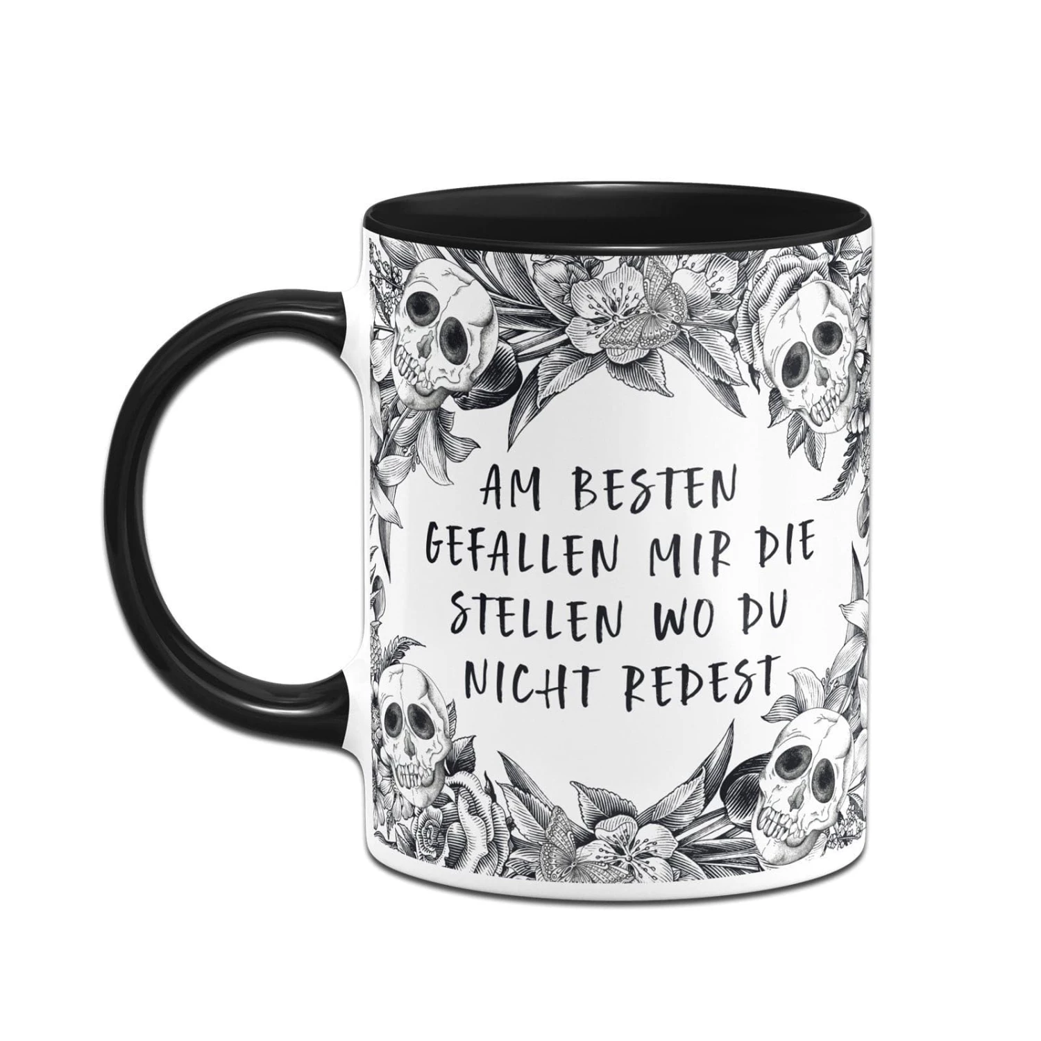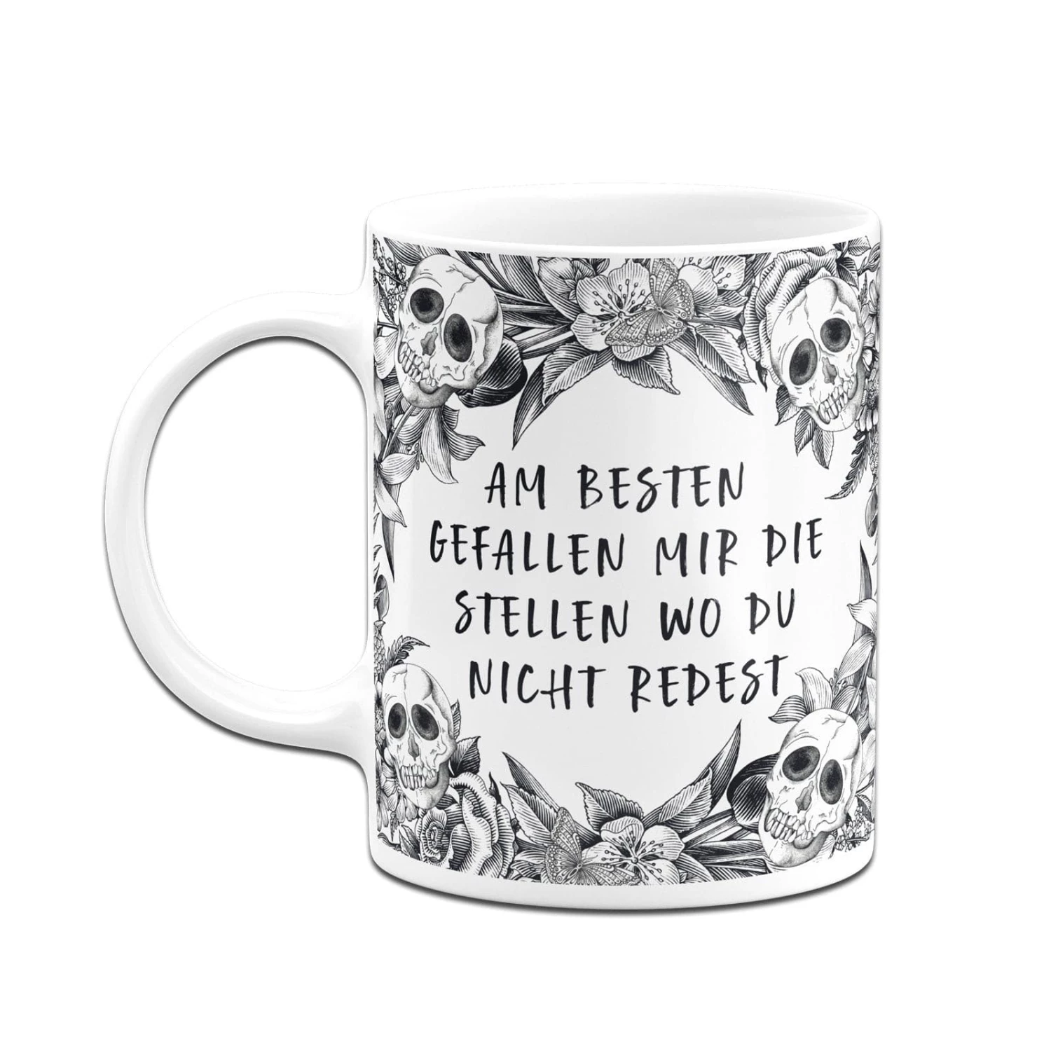 Skull Statement 💀 Totenkopf Tasse mit Spruch: Am besten gefallen mir die Stellen wo Du nicht redest (im Rundumdruck)