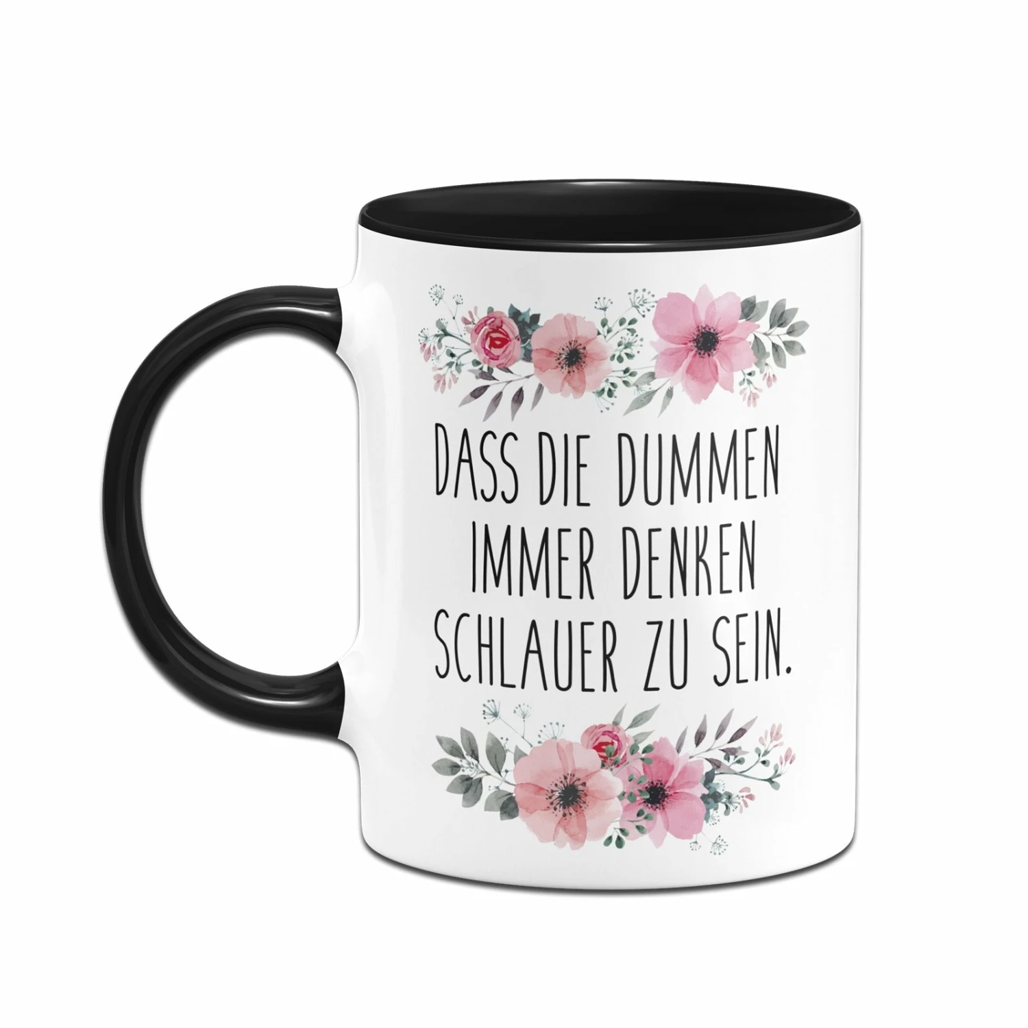 Blümchen-Tasse 🌸 mit Spruch: Dass die Dummen immer denken schlauer zu sein.