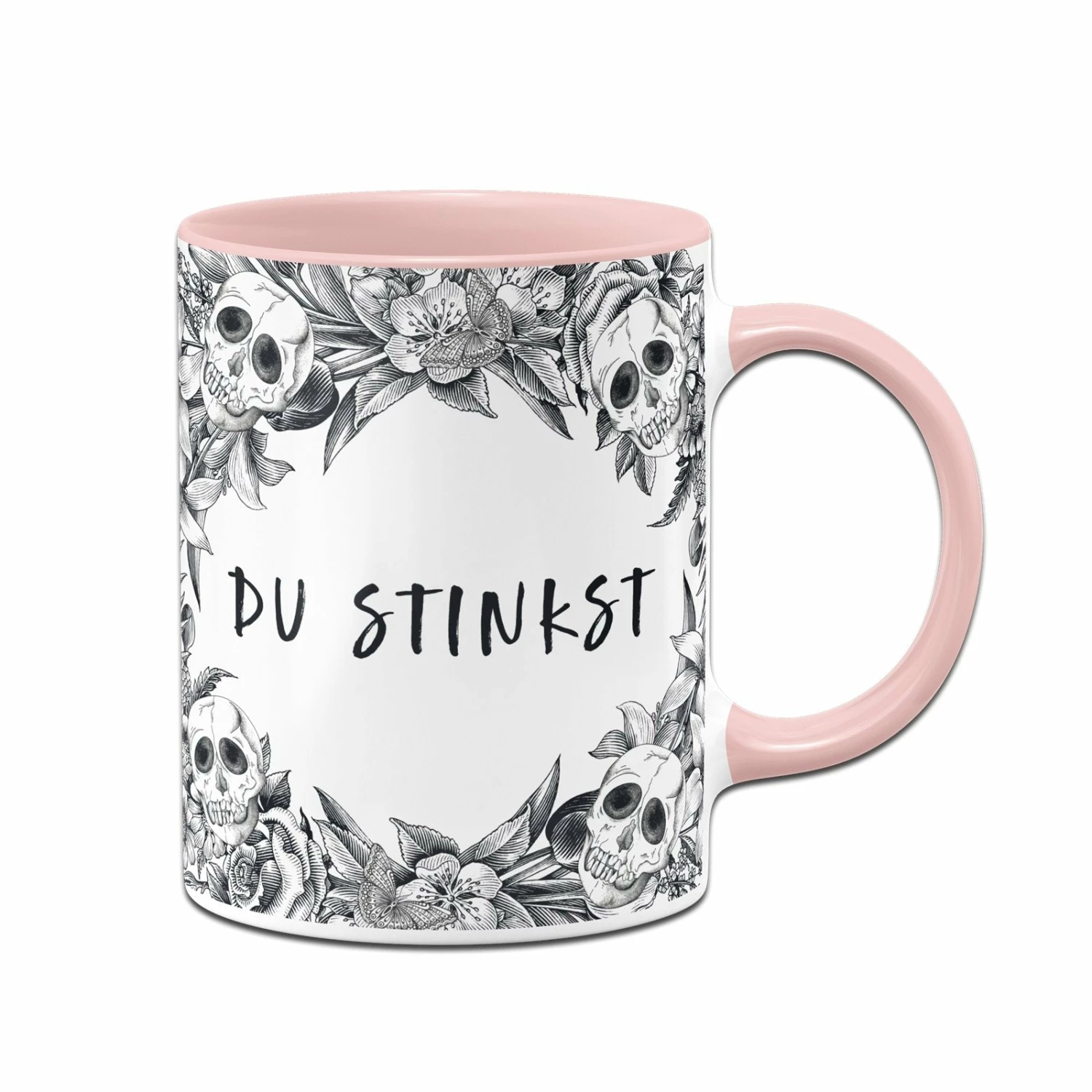 Skull Statement 💀 Totenkopf Tasse mit Spruch: Du stinkst (im Rundumdruck)