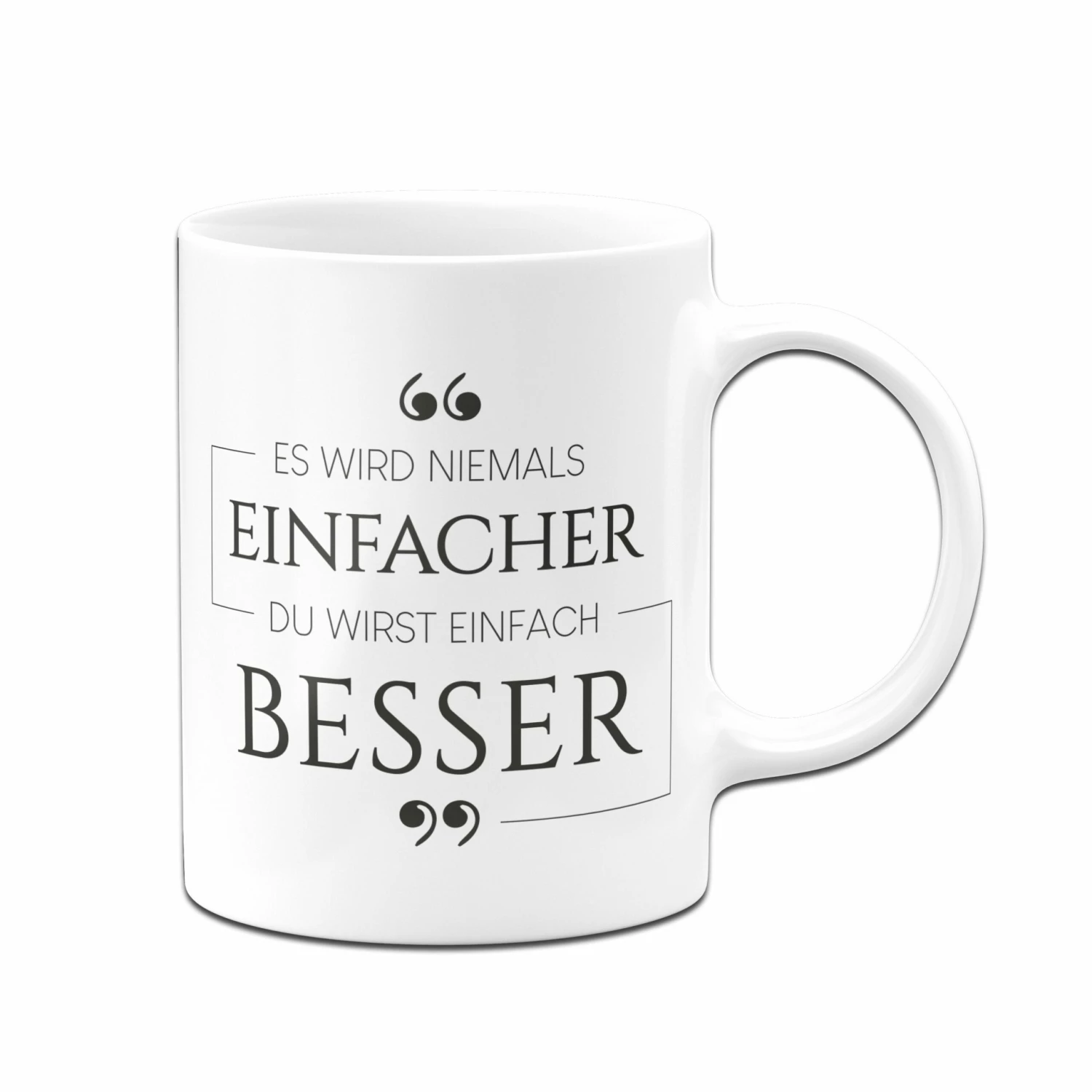 Motivations-Tasse mit Spruch: Es wird niemals einfacher. Du wirst einfach besser. 💪