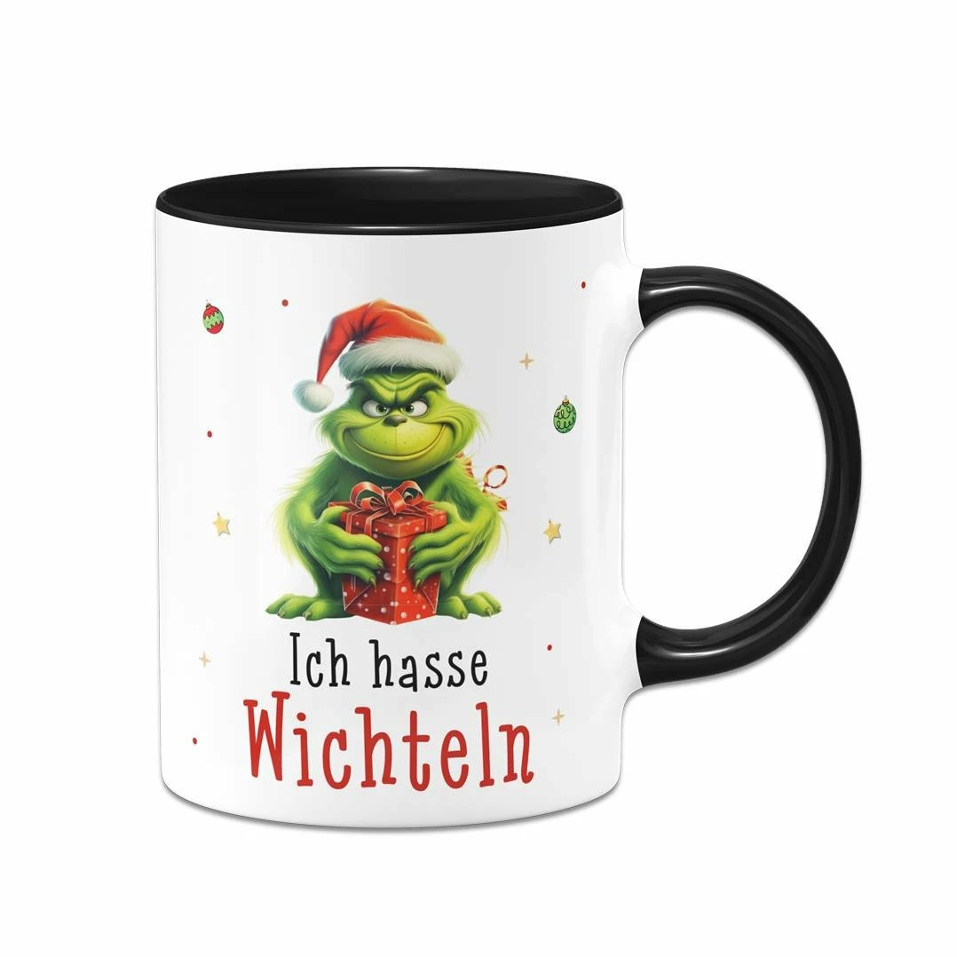 Weihnachtstasse mit Grinch Motiv und Spruch: Ich hasse Wichteln 🎁⭐