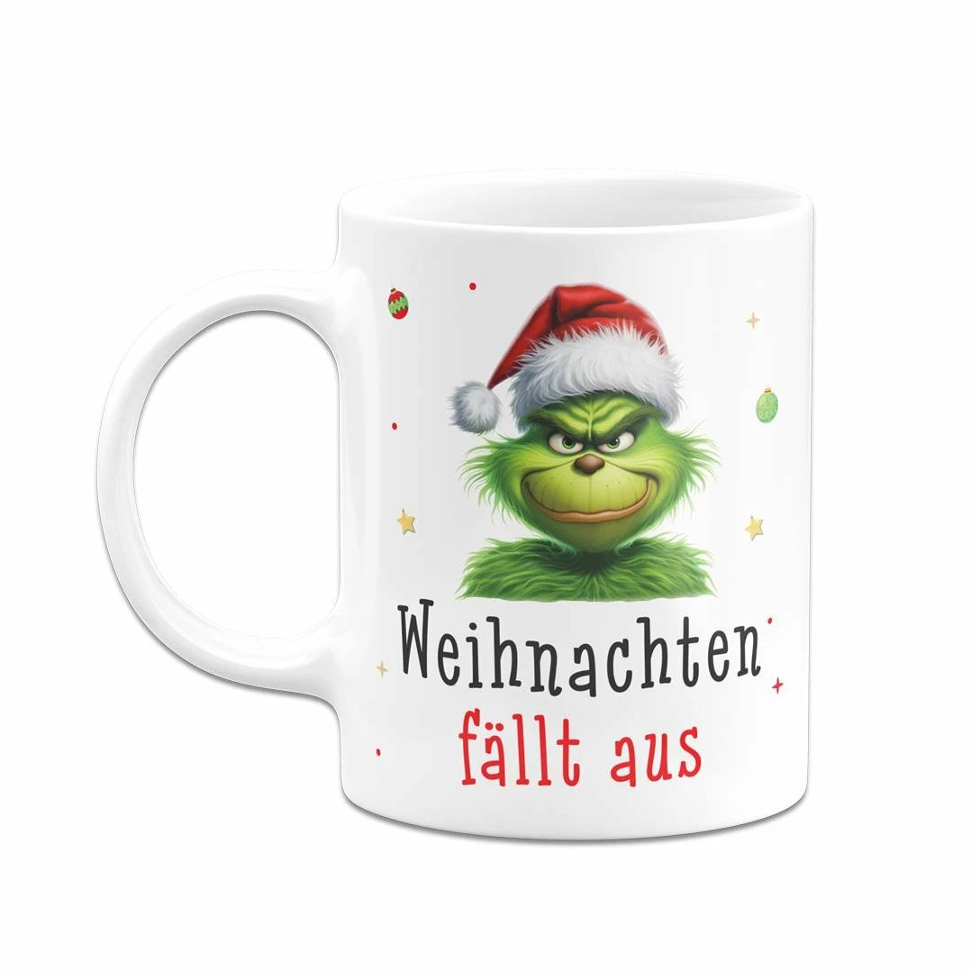 Weihnachtstasse mit Grinch Motiv und Spruch: Weihnachten fällt aus ⭐