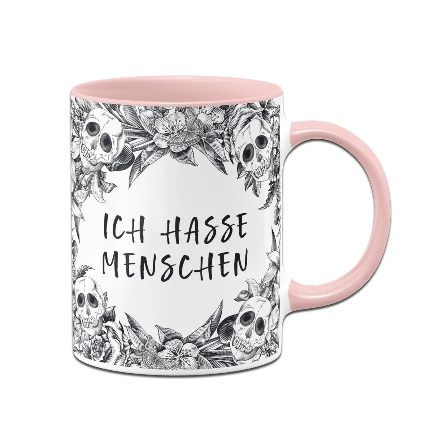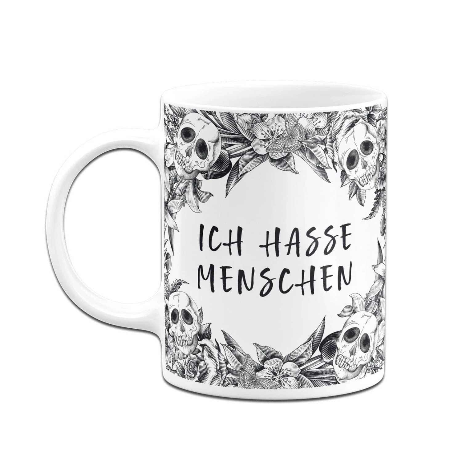 Skull Statement 💀 Totenkopf Tasse mit Spruch: Ich hasse Menschen (im Rundumdruck)