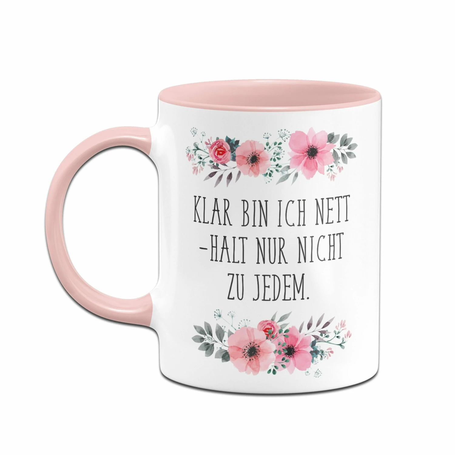 Witzige Tasse aus unserer Blümchen Edition mit Spruch: Klar bin ich nett – nur nicht zu jedem.