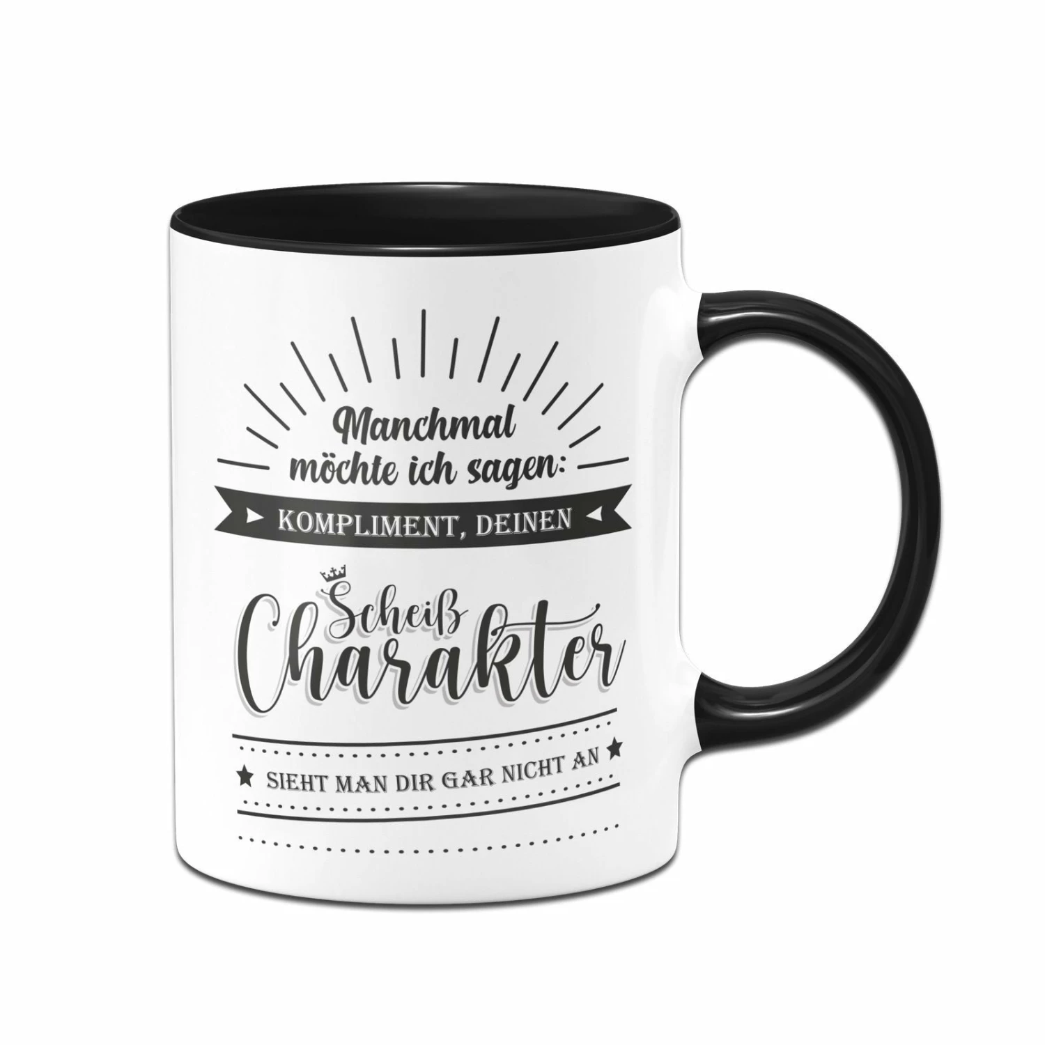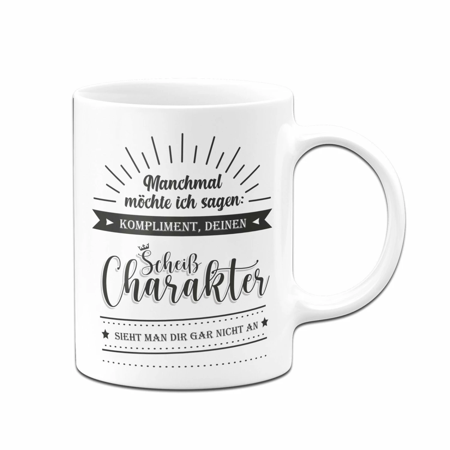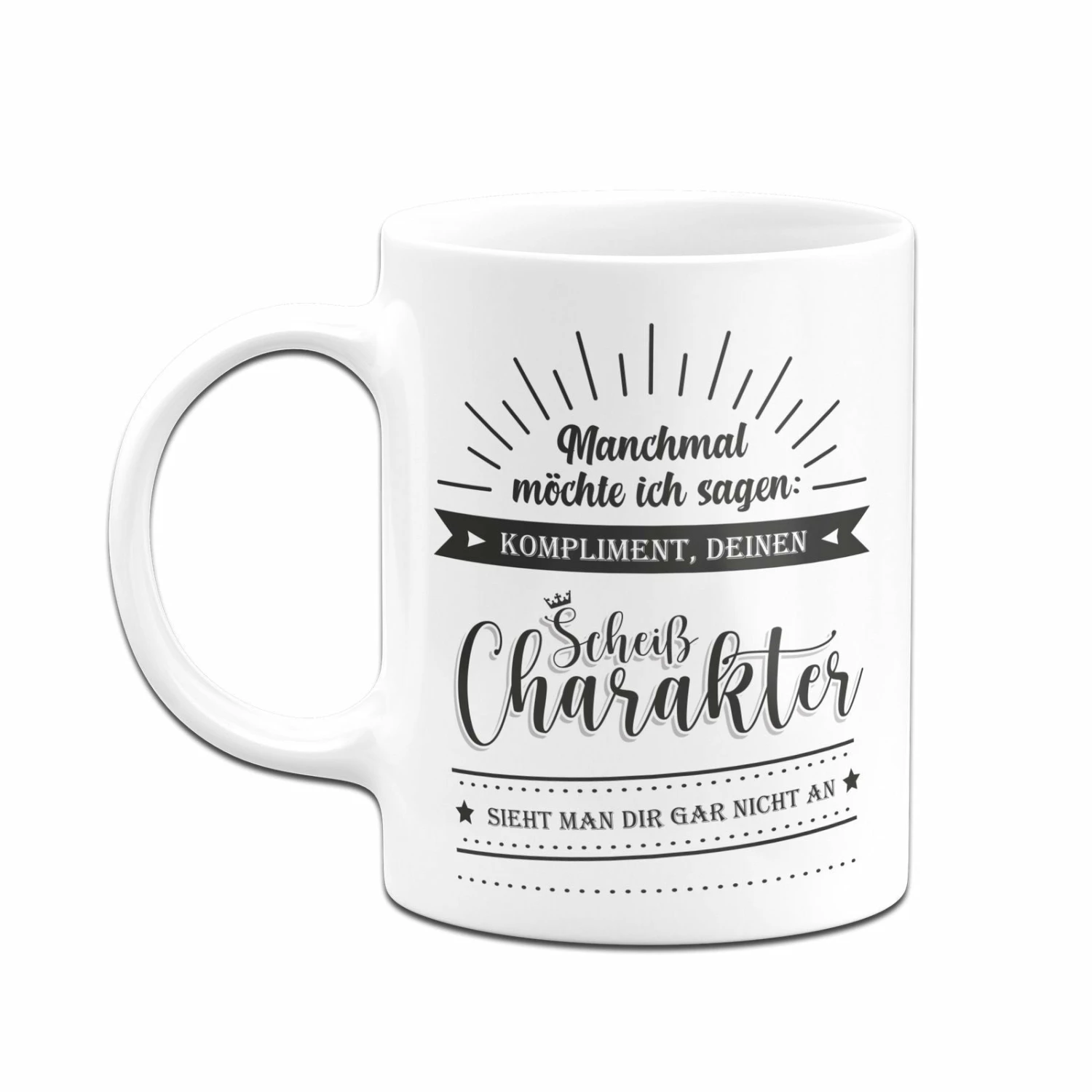 Tasse mit Spruch: Manchmal möchte ich sagen: Kompliment, deinen scheiß Charakter sieht man dir gar nicht an. ⭐