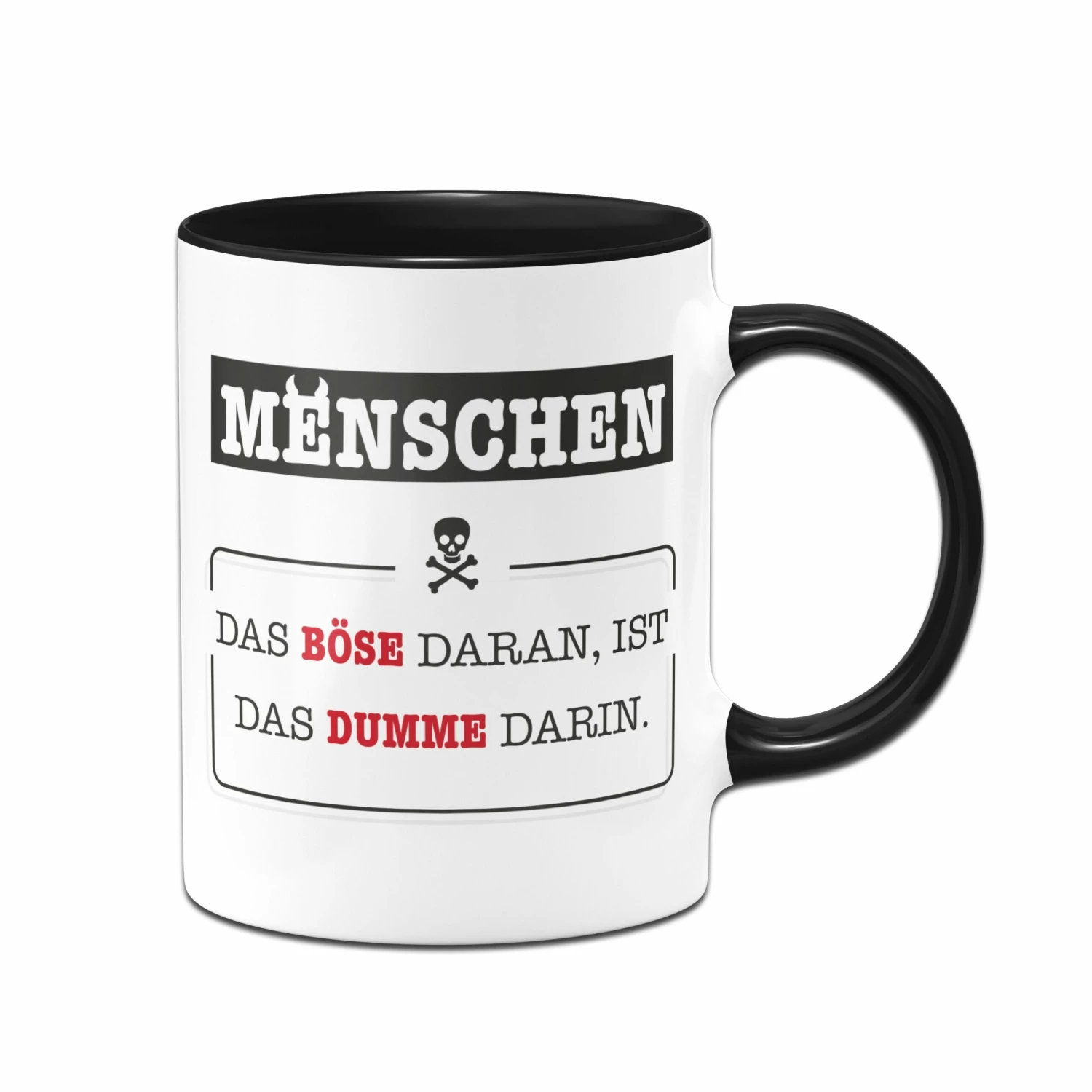 Tasse mit Spruch: Menschen ☠️ Das Böse daran, ist das Dumme darin.