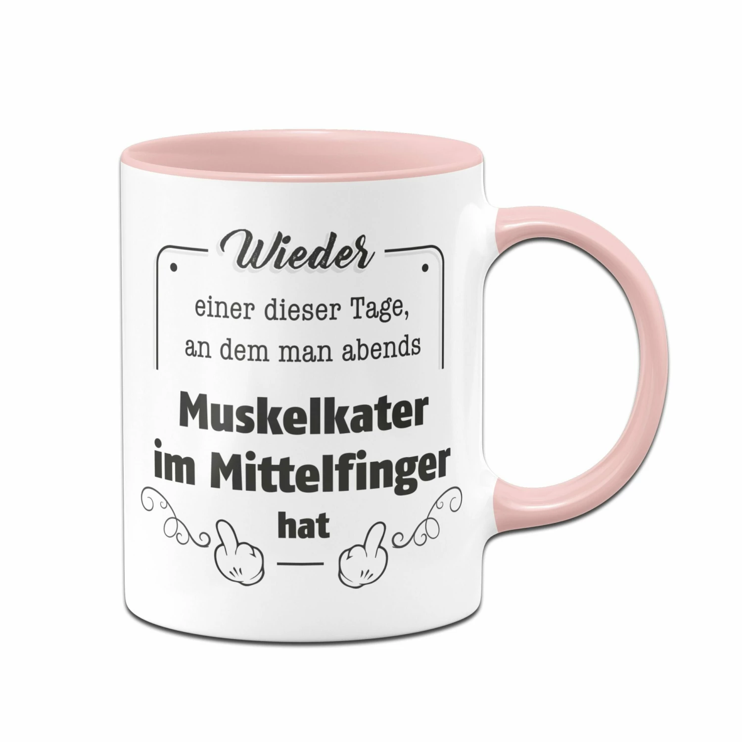 Tasse mit Spruch: Wieder einer dieser Tage, an dem man abends Muskelkater im Mittelfinger hat 🖕