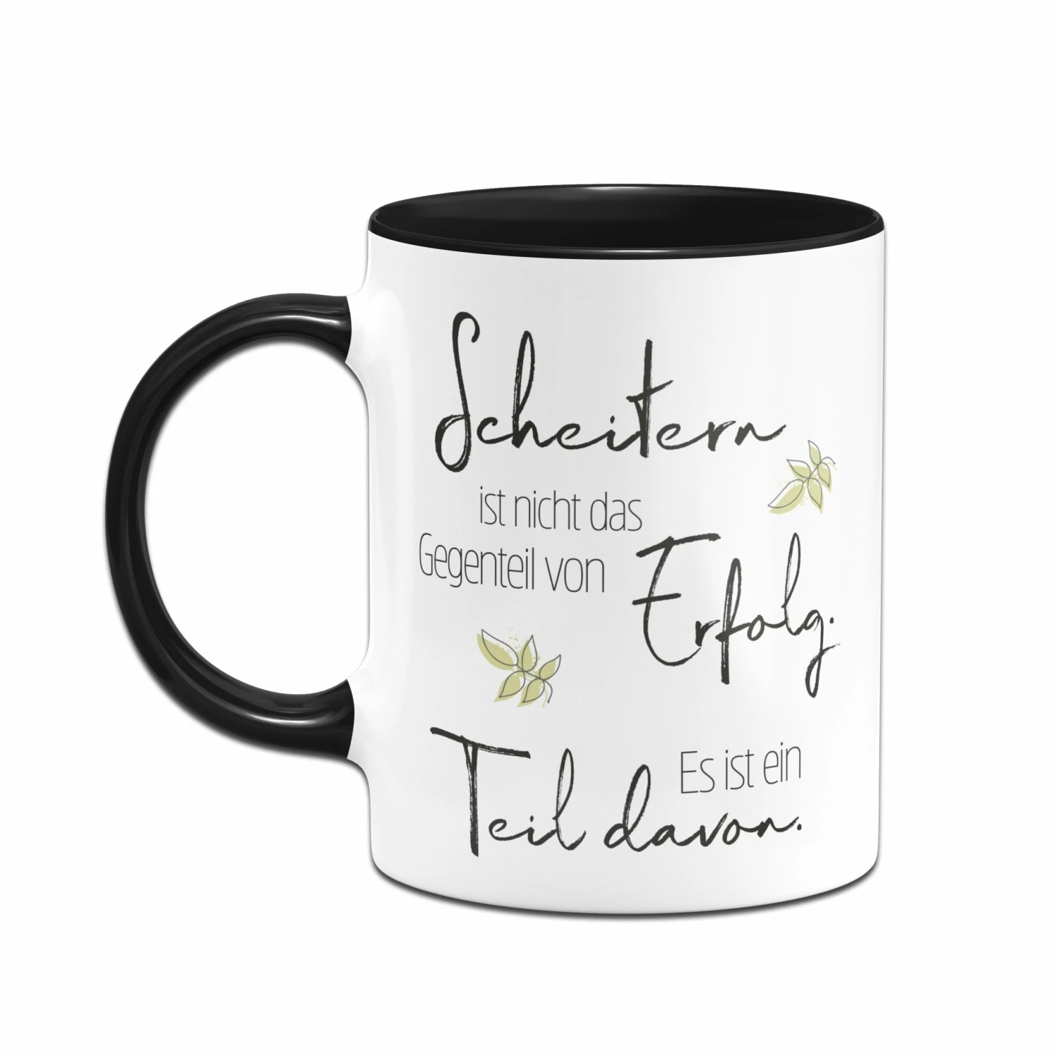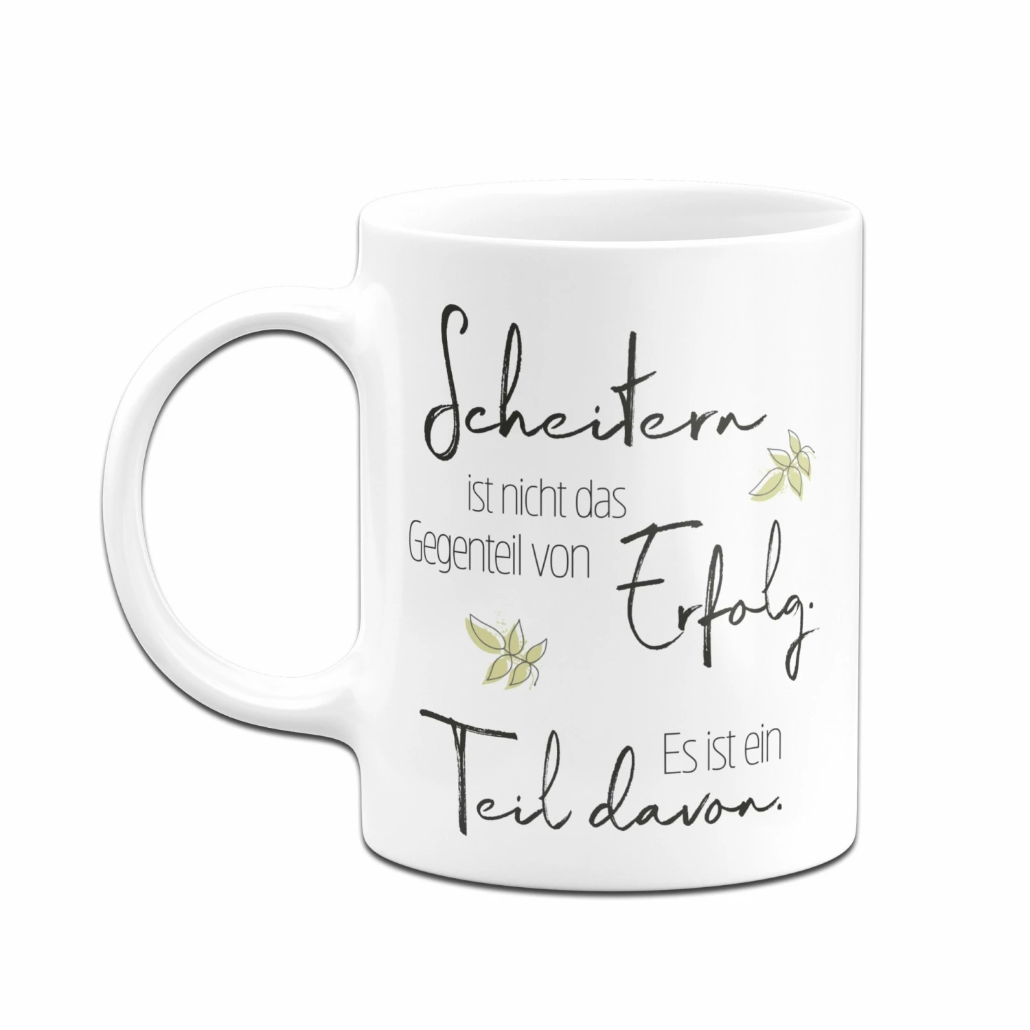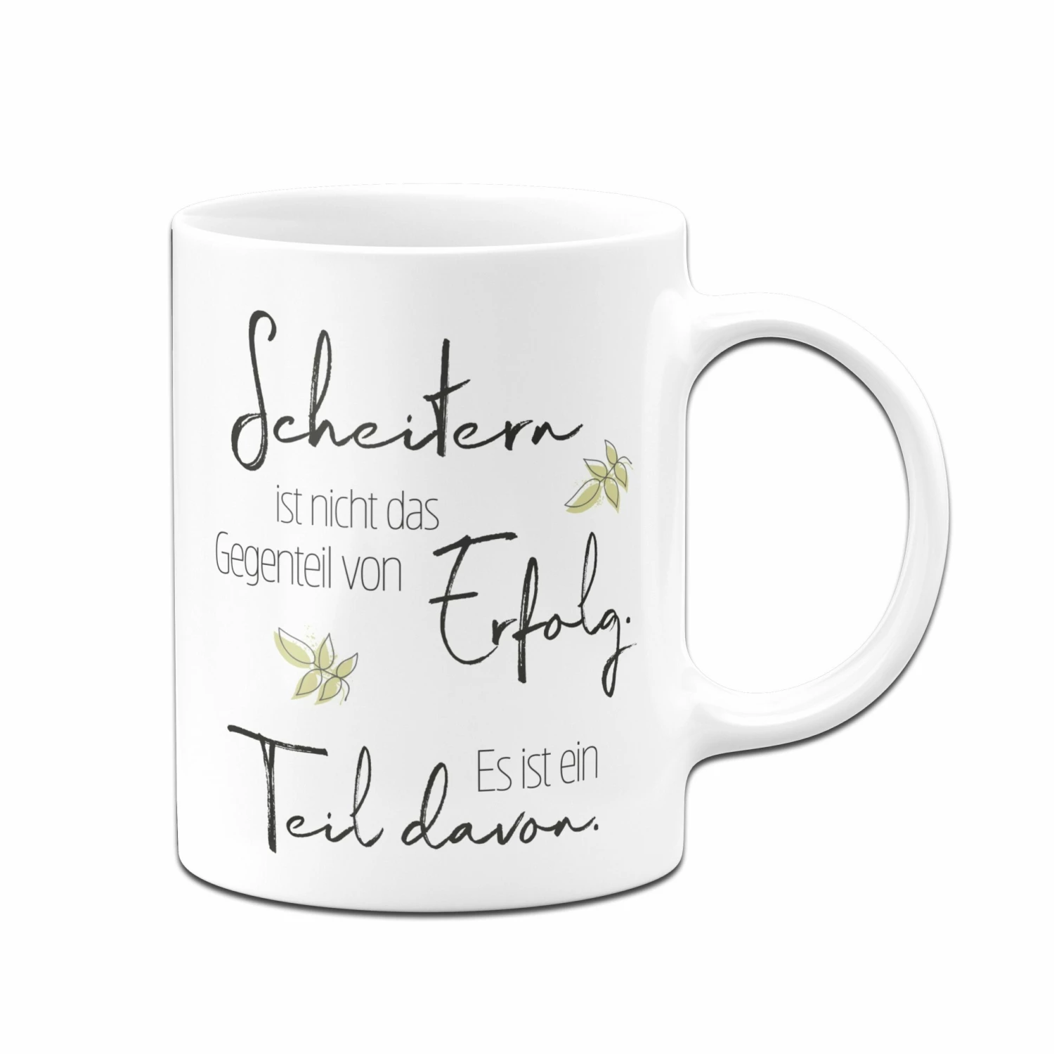 Motivations-Tasse mit Spruch: Scheitern ist nicht das Gegenteil von Erfolg. Es ist ein Teil davon. 🌿
